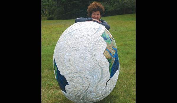 together to perhaps answer a question or to gain a better understanding of a relationship or a math problem? The mosaic demands a conscious decision for each glass tile selected. The individual parts connect to make a unique whole. The substance glass can be fragile, smooth, sharp, transparent, opaque, colorful, and very dense when combined with cement. To me the tiles represent the distinctly human choice to perceive every moment as if for the very first time. The outcomes evolve with each choice made.