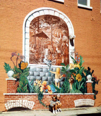 Title: Past, Present and Future Site: Phila St. Saratoga Springs Year:1997 Scale: 25x20 Feet Artist:Ceres Zabel Participants:Odyssey Students, and Select Students from Saratoga Mentoring Program Sponsors: Catholic Charities, and OSFA